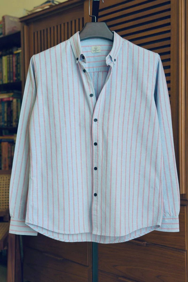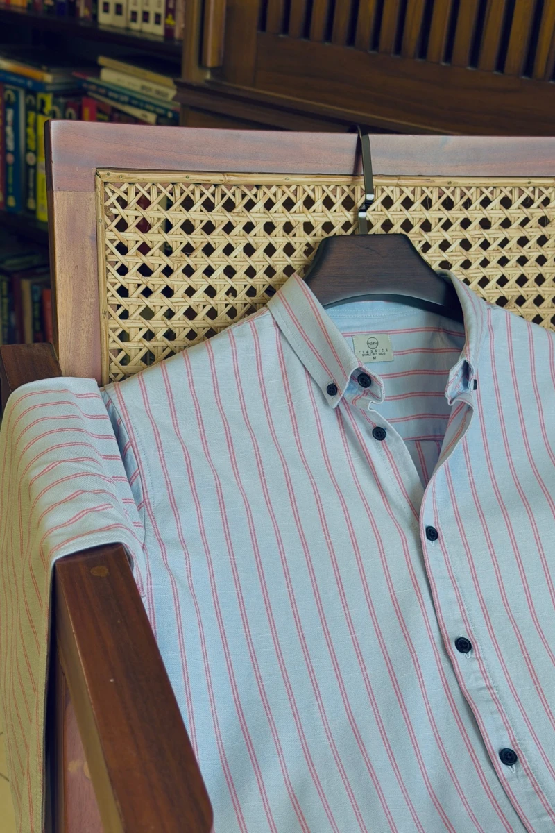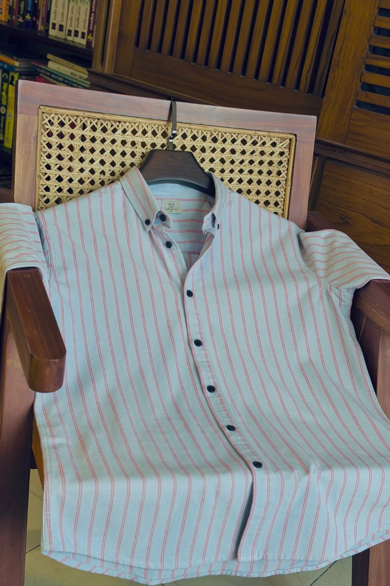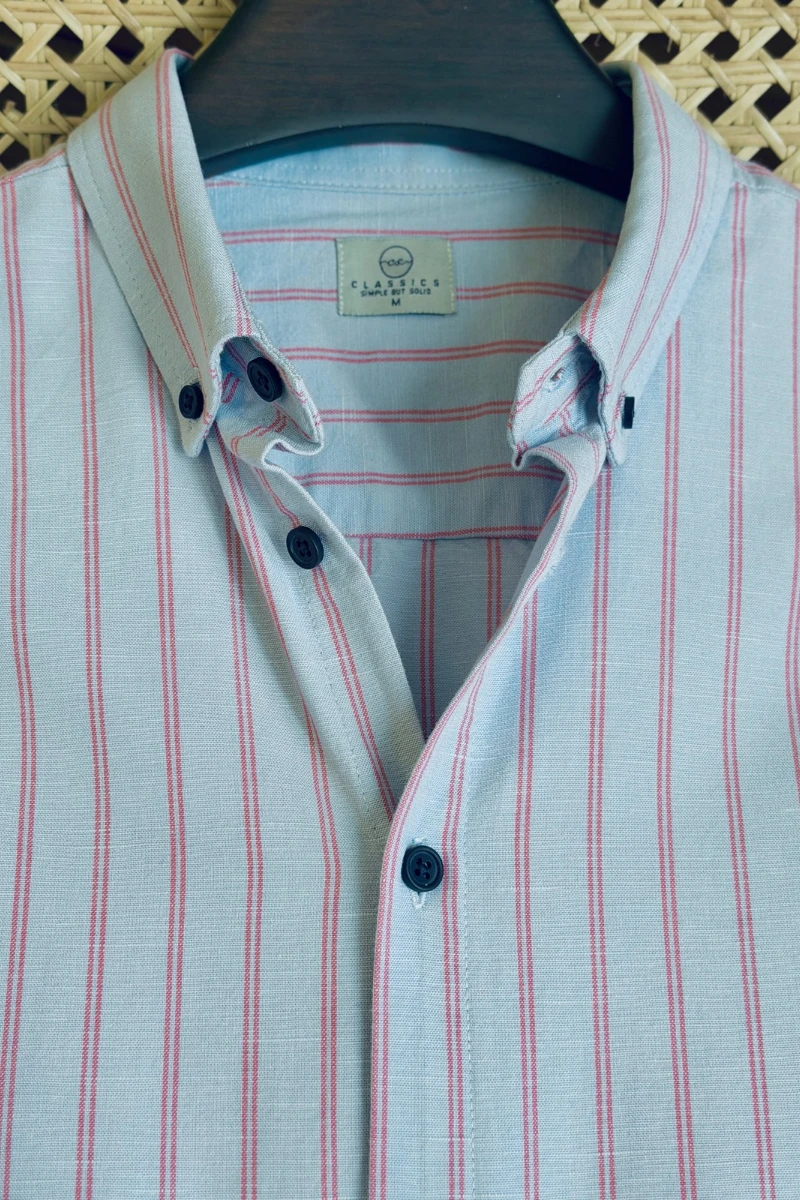 Dusty Blue With Orange Stripe Shirt