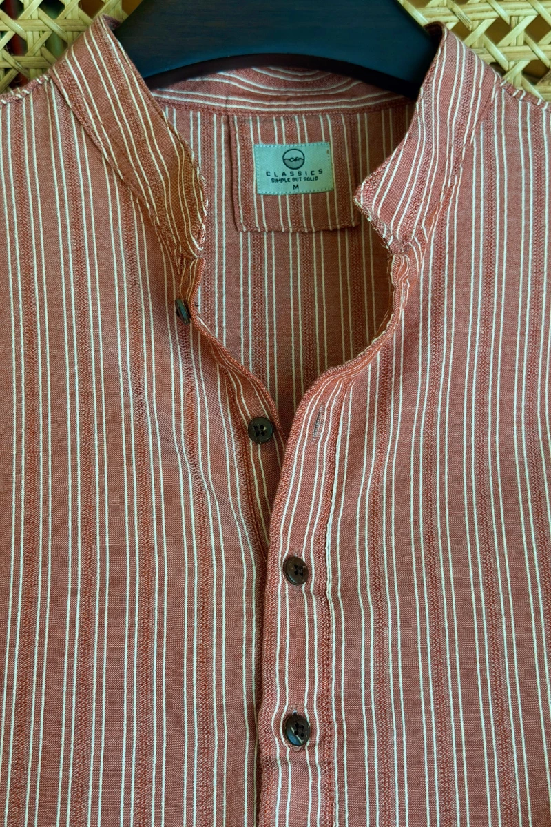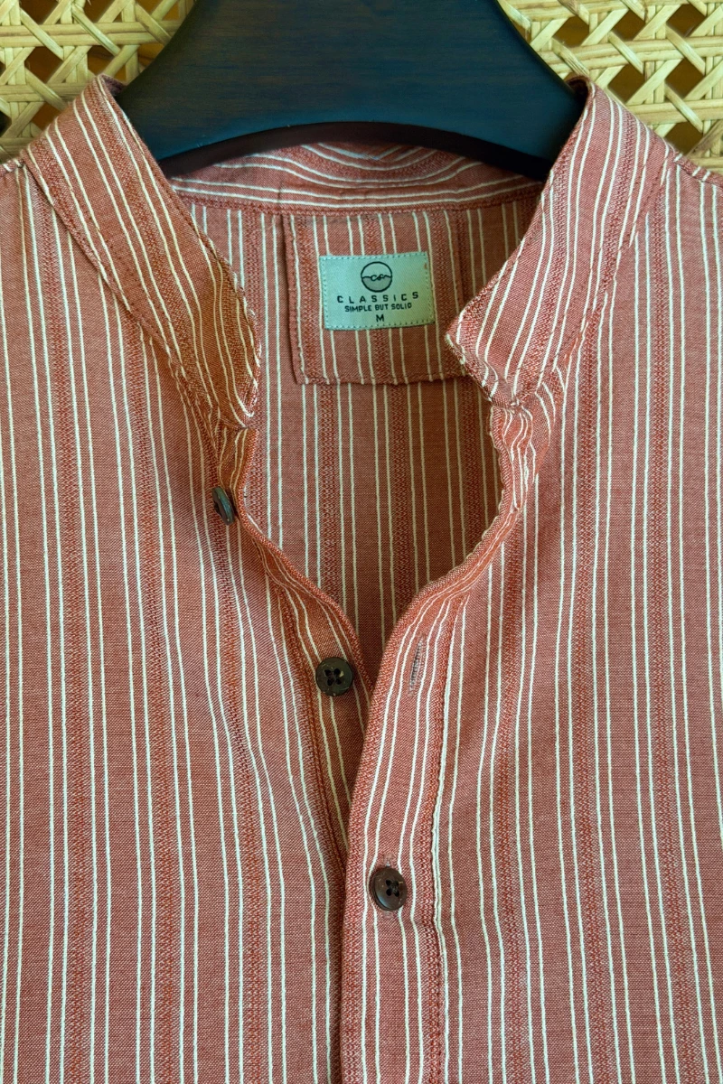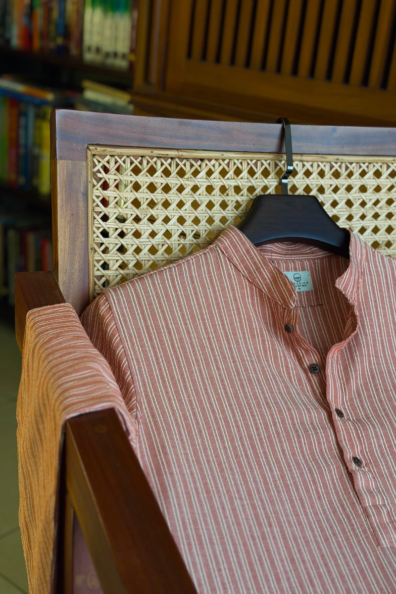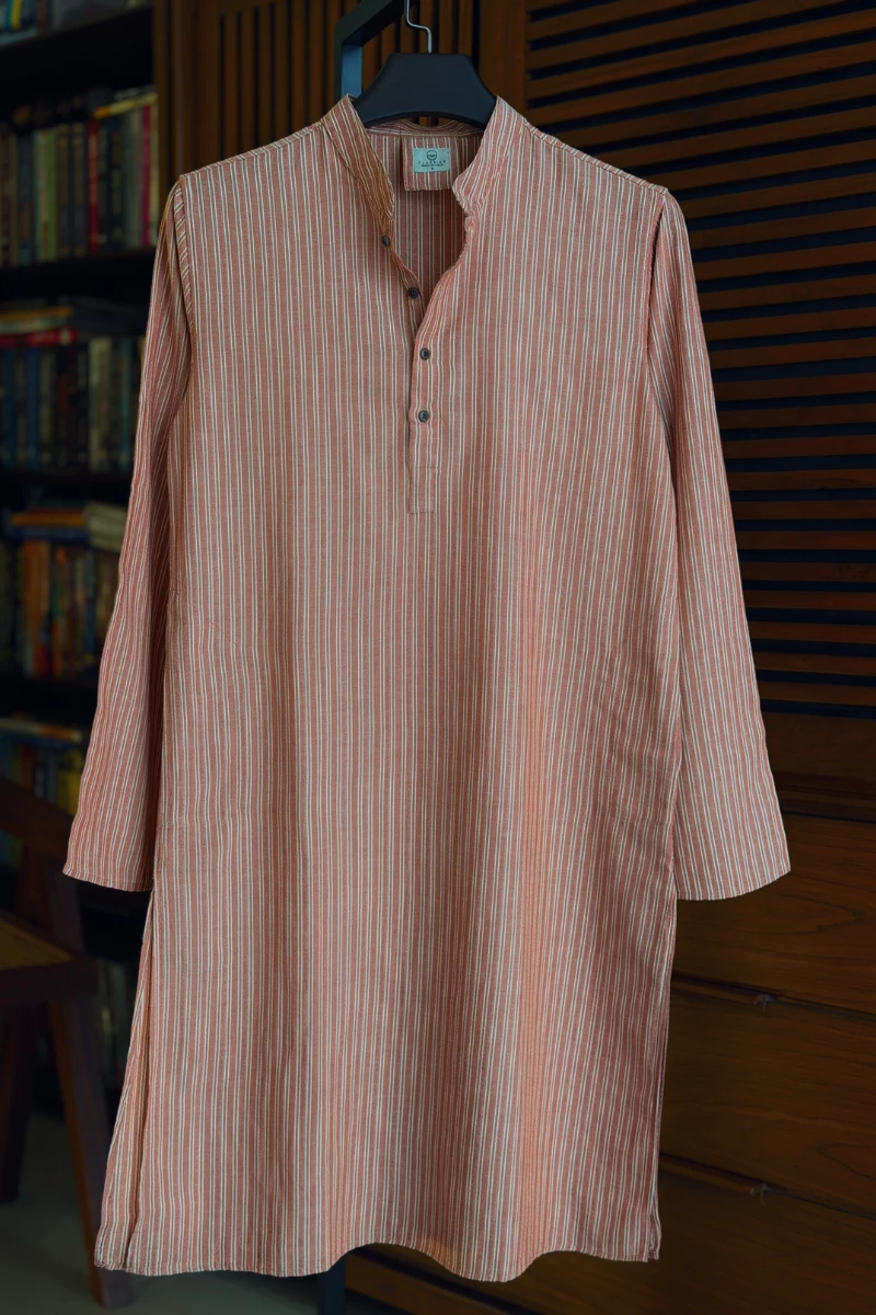 Dusty Brick with Off-White Pinstripes Panjabi
