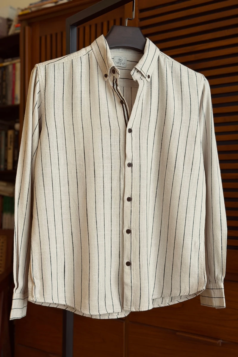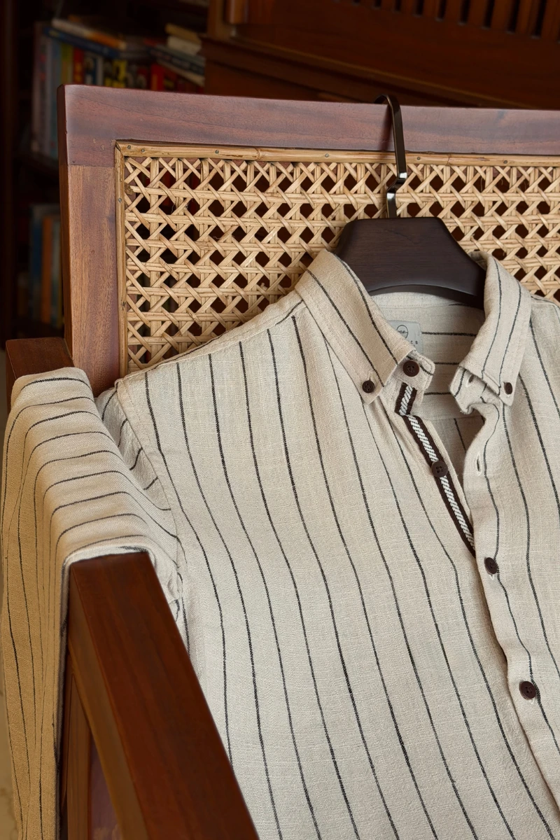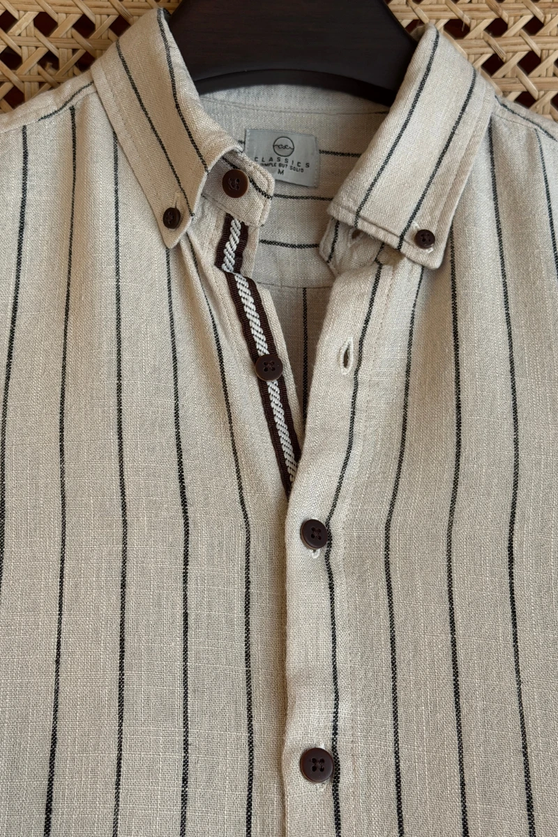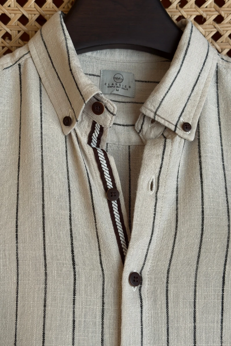 Light Beige With Black Stripe Contrast Placket