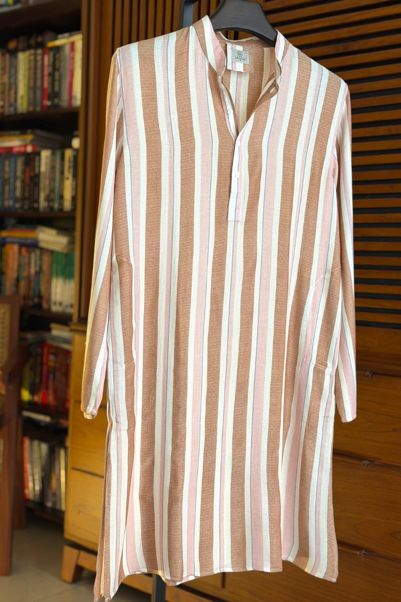 Warm Rust Orange with Cream & Dusty Pink Stripes Panjabi